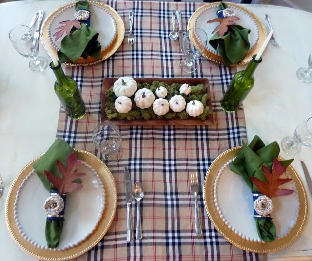 A scarf, a quilt or even a flannel bed sheet could make a beautiful tablecloth at this time of year.