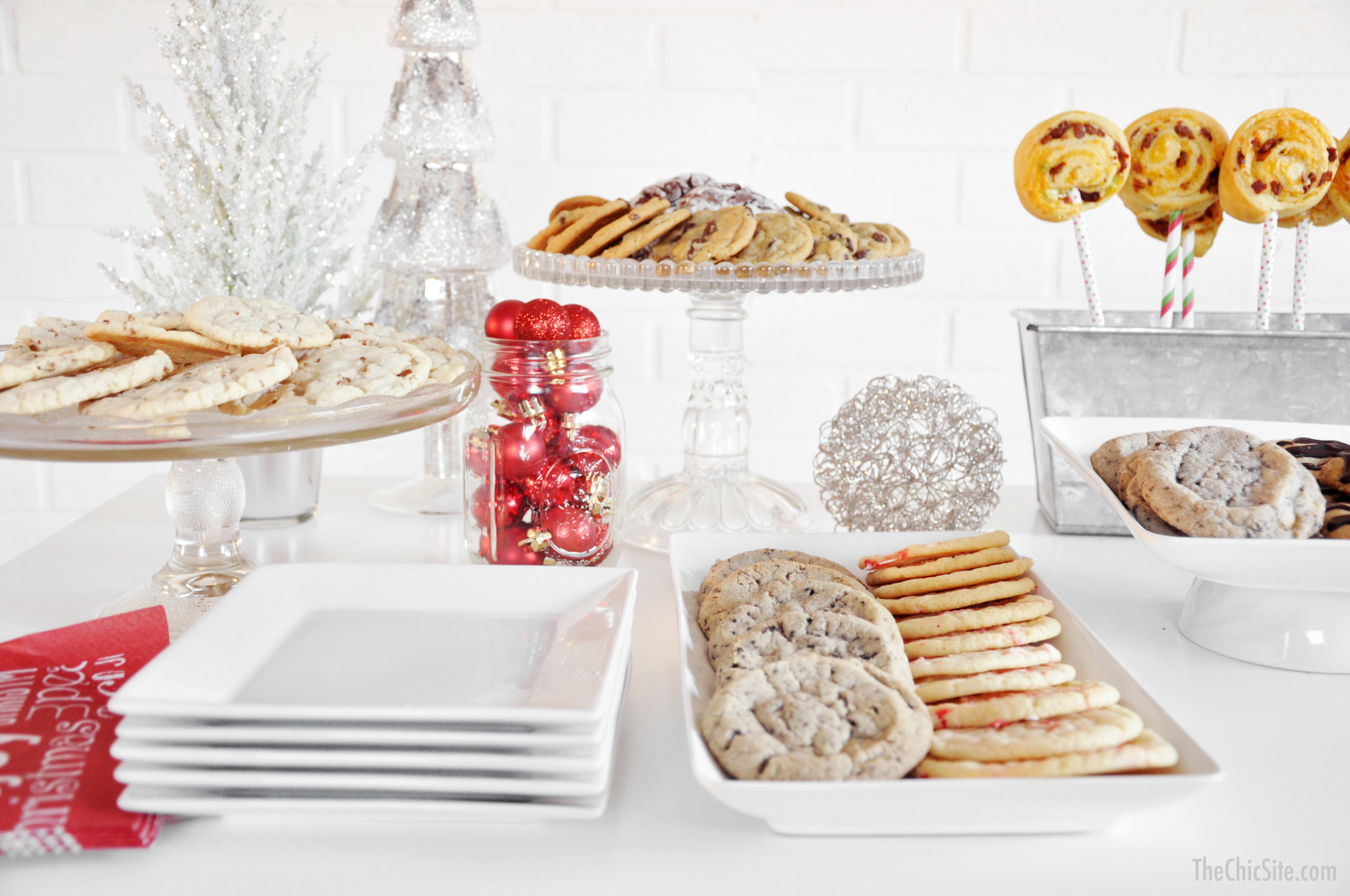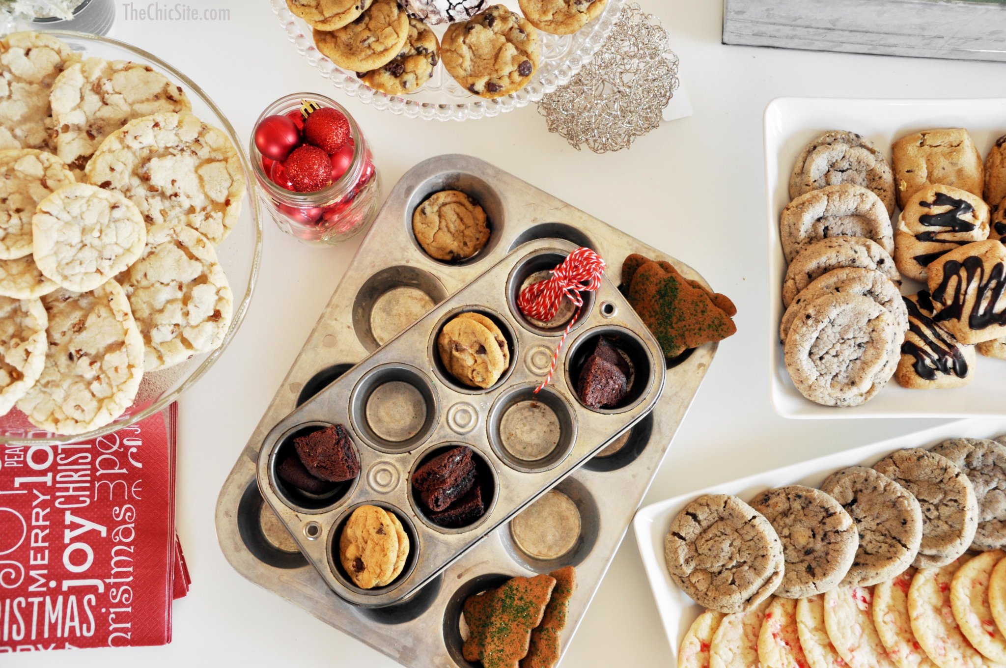 Call me a control freak but I really love all of the dishes on my buffet to match. If you’re like me, consider setting your cookie exchange buffet up empty and then leaving cute little tags instructing your guests where to put their own creations.