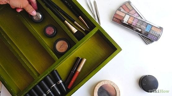 Silverware organizers can be repurposed for makeup, office supply, or jewelry storage. Here, wikiHow shows us how to organize makeup in one of these silverware dividers. Look how perfectly those lipsticks fit!
