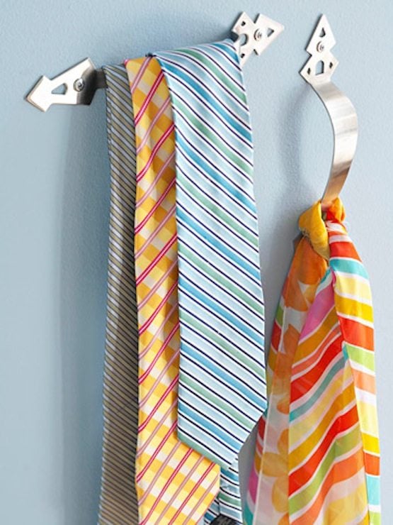 Installing drawer handles on free wall space in a closet can maximize that space for organizing ties and small scarves.