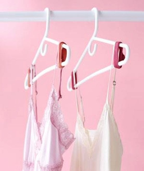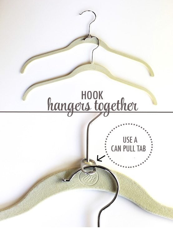 If you need a double hung outfit in a pinch, use a soda pop tab to connect two hangers. Such a simple hanger hack!
