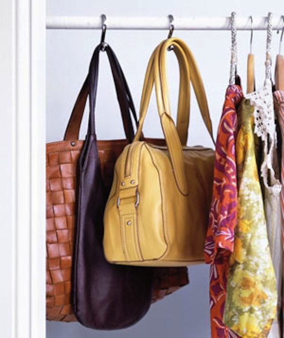 Shower curtain hangers can also double as sturdy purse hangers. Hanging up your larger purses is a great way to make sure they don’t lose their shape.