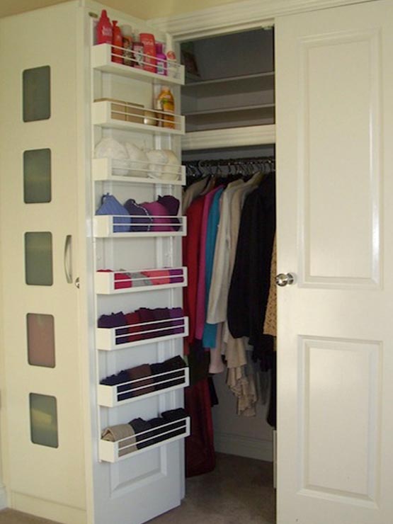 This shallow shelving mounts to the inside of a closet door and maximizes storage space. This is a great solution for small spaces! You can see this storage unit HERE.