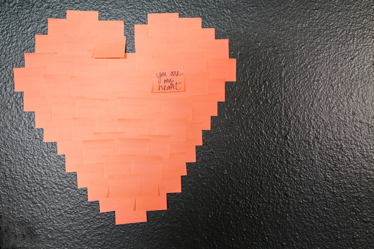 Just get a pack of sticky notes in your favorite color and use them to make a heart on the wall.