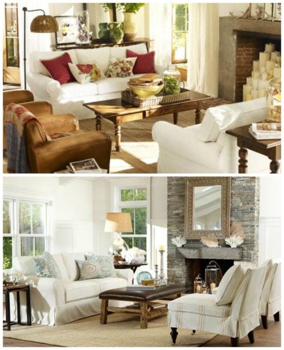(*Chic tip – All three images shown above are from Pottery Barn. They have the best stylists in the industry, so it’s worthwhile to study and earmark your catalogs.)