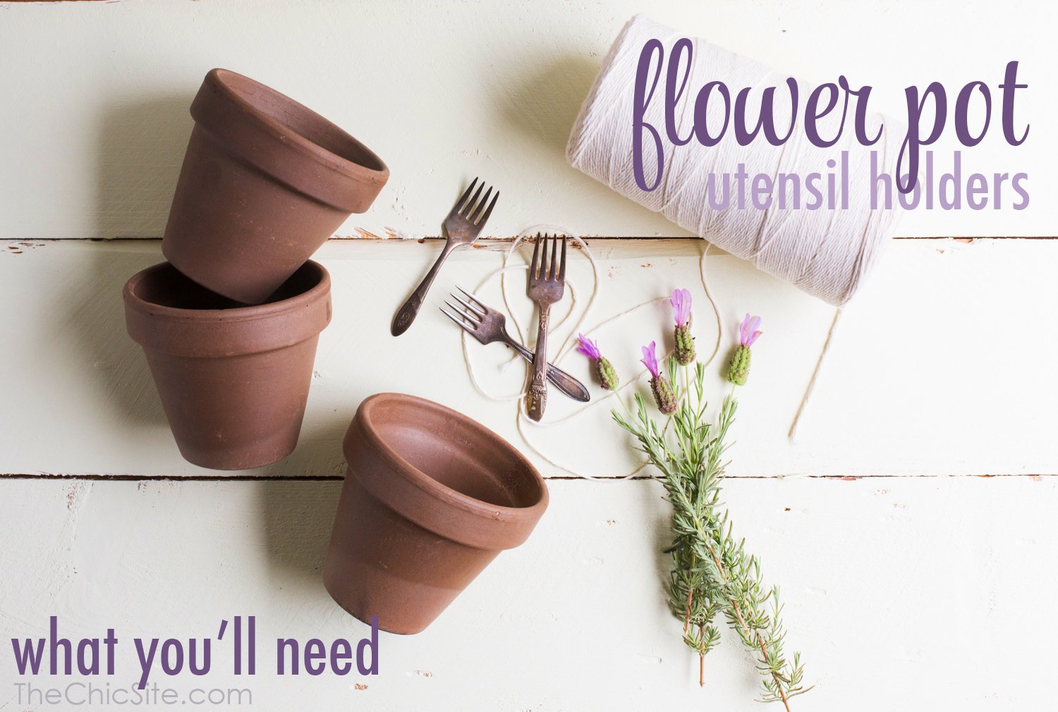 Little flower pots make such charming silverware holders for spring and summer parties! I added a little lavender sprig and my Nana’s vintage forks to give them a sweet little makeover that’s so easy anyone can do the same! ~Rachel