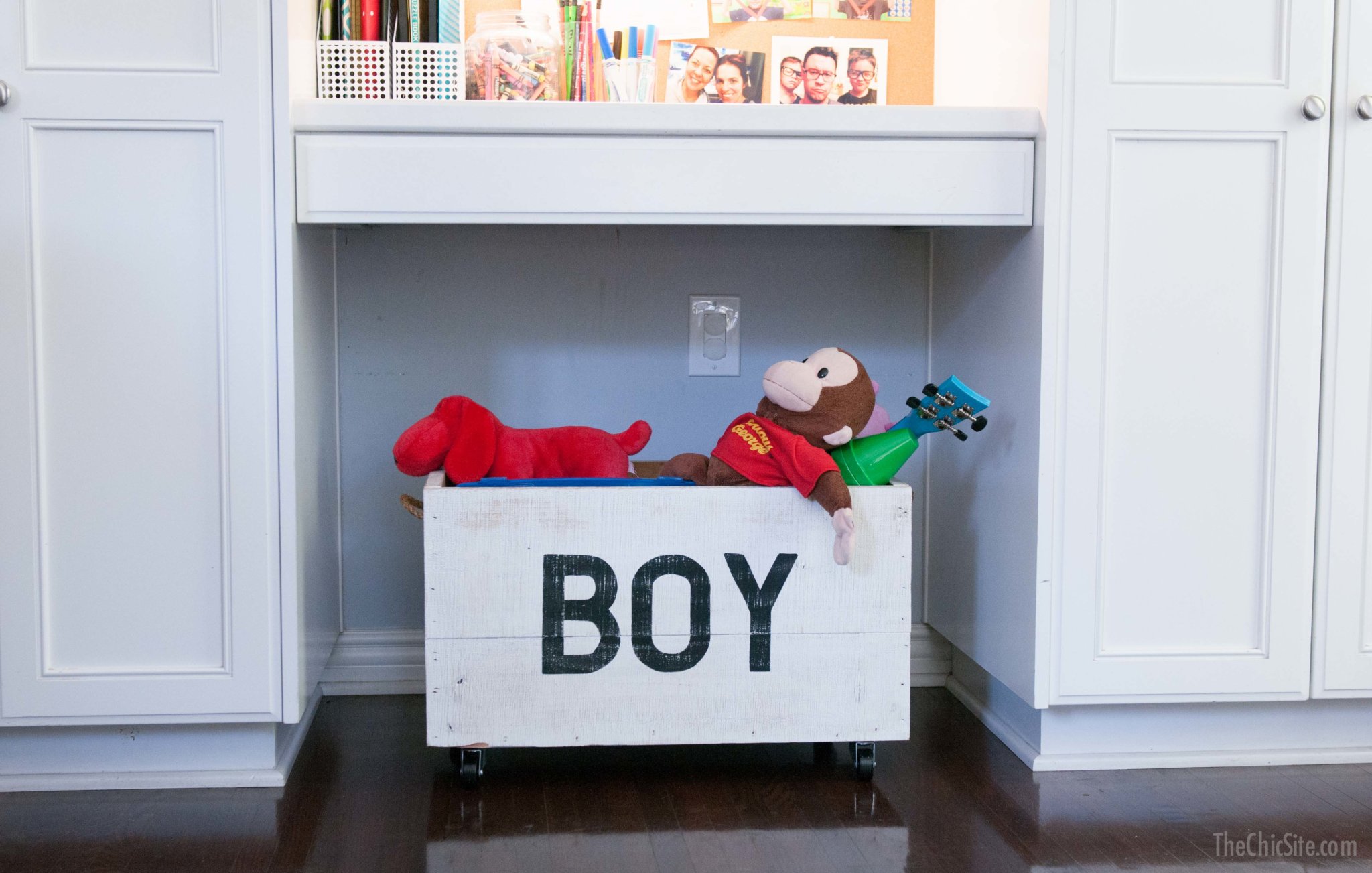 A toy box in the kitchen might be crazy… as in, crazy genius! At first I tried to battle to keep the toys . Finally I gave up and found them a place to live in this cute BOY toy box from ShopTen25.