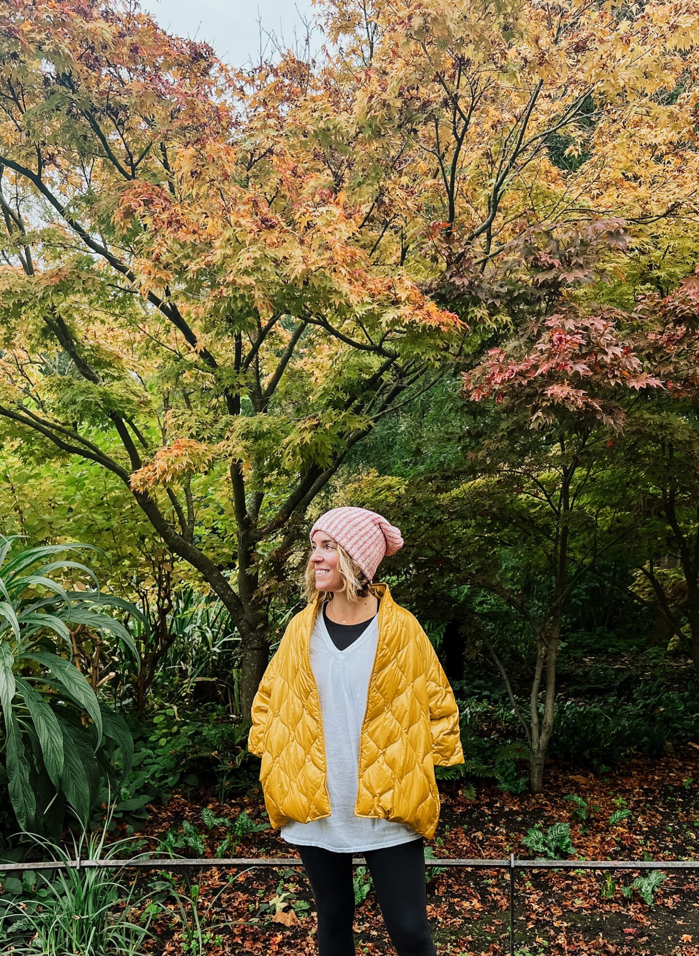 I like to create a sort of, 7-Layer Dip of clothing. I start with a fitted tank or tee, a soft long-sleeve or lightweight sweater, and then a jacket that looks great but doesn’t make you feel bulky. I love a packable jacket for this. I’ve had a green one from Madewell for almost a decade and my newest from Jarbo is magic. You can roll them into a ball, toss them in your tote, and somehow they come out looking great. If you’ve ever wondered what sorcery feels like, it’s that.