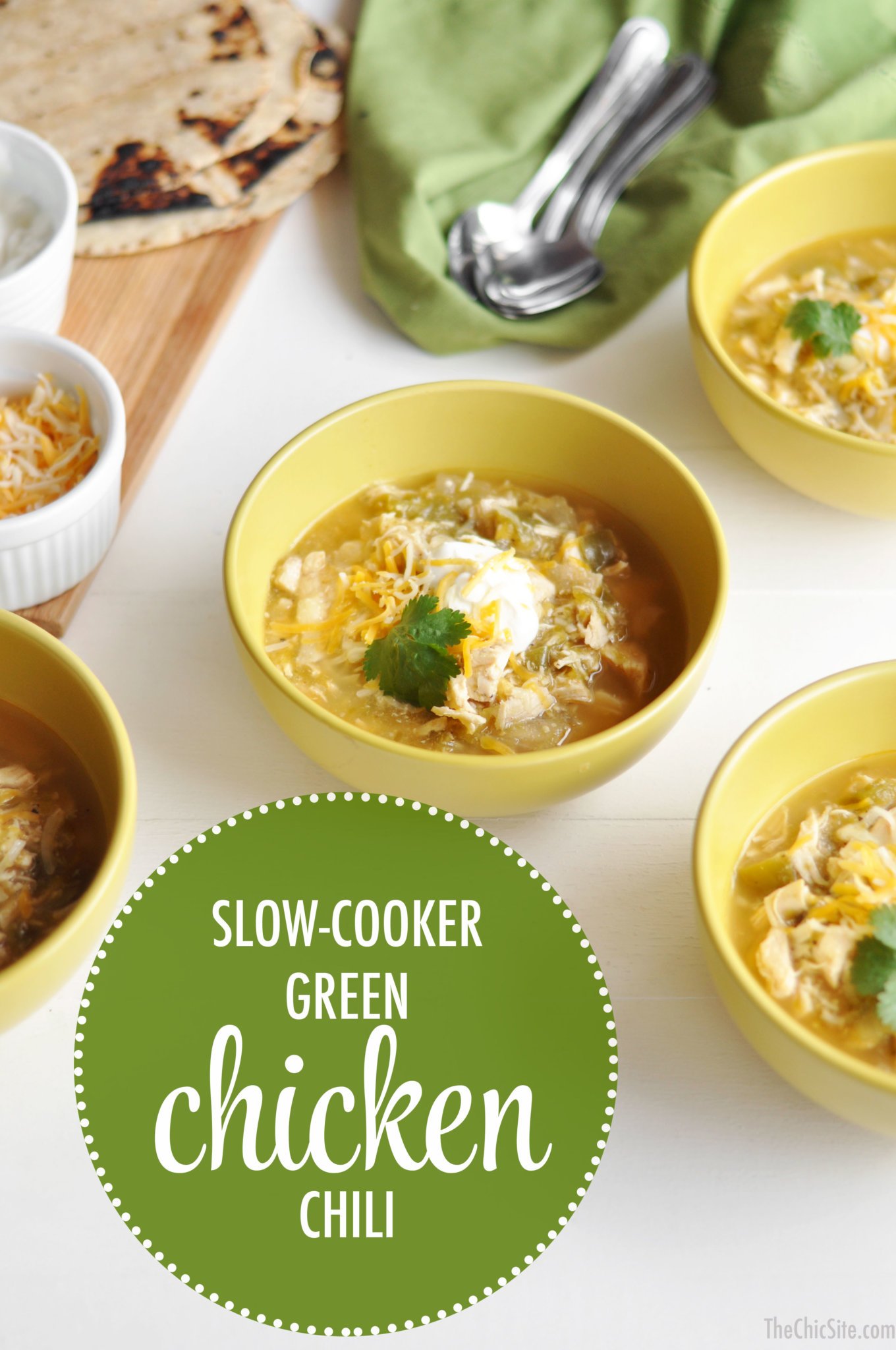 We’re always on the lookout for something new to put into our slow-cooker. When this Green Chicken Chili came to mind, we jumped at the chance to make it and share it with you guys. It’s super easy to make, with only a handful of ingredients, but it’s absolutely delicious. Give it a try! This is the type of slow-cooker recipe where you just throw everything into the bowl and set it low and slow. In case you aren’t sure what tomatillos are, they’re those small green tomato-looking things that are wrapped in a husk. I’m sure you’ve seen them at the grocery store before! Once the chili has cooked and you’re about ready to serve, take a potato masher and smush it all together to break down the chicken into smaller pieces. Serve the chili in bowls and top it with sour cream, cheese and cilantro. Or any other of your favorite chili toppings! Serve it with cooked long grain rice or a side of tortillas to complete the meal. Turn the leftovers into tacos, burritos or even quesadillas for a new take on last night’s dinner! This is a great recipe to set up early in the morning before heading into work. Just combine all of the ingredients and set the slow-cooker on low. You can keep it cooking until you come home and are ready to serve dinner.