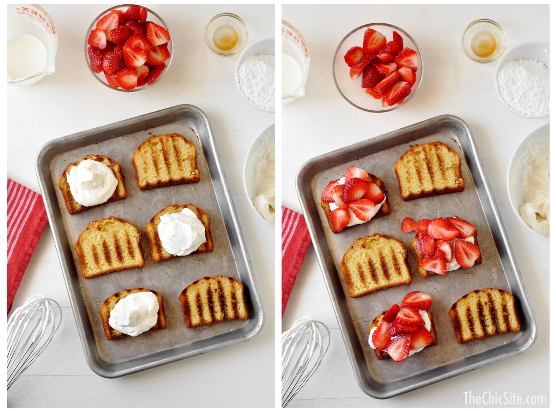 I’ve been on a grilling kick lately, trying desperately to grill anything and everything in sight. We’re kicking off grill season here at The Chic by showcasing a grilled recipe every Friday! To start things off, we’re taking a classic recipe, Strawberry Shortcake, and taking it to the grill.