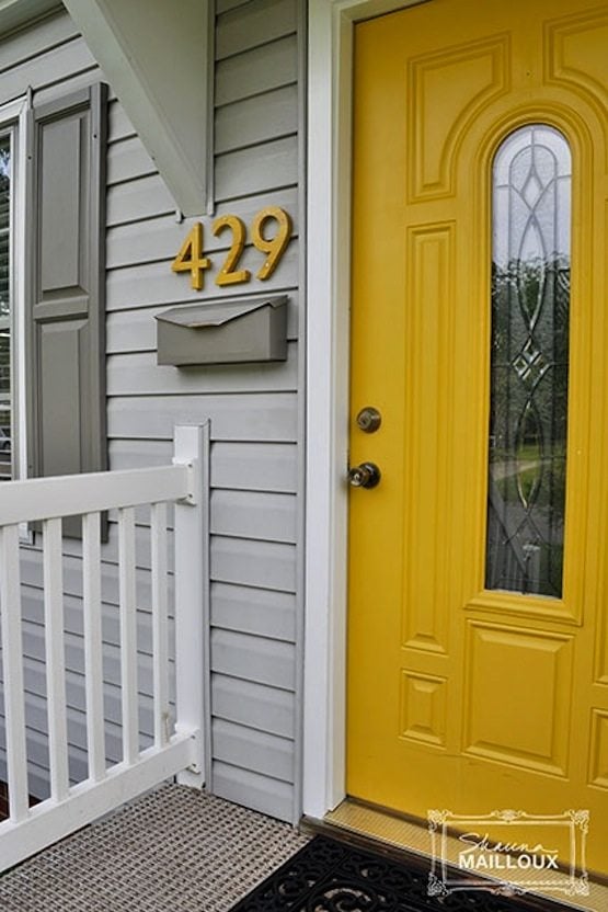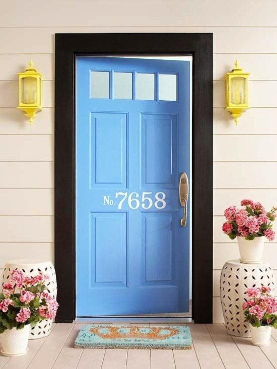 This idea from the DIY Network is really unique. I would remove the house numbers from above the door to make it really stand out.