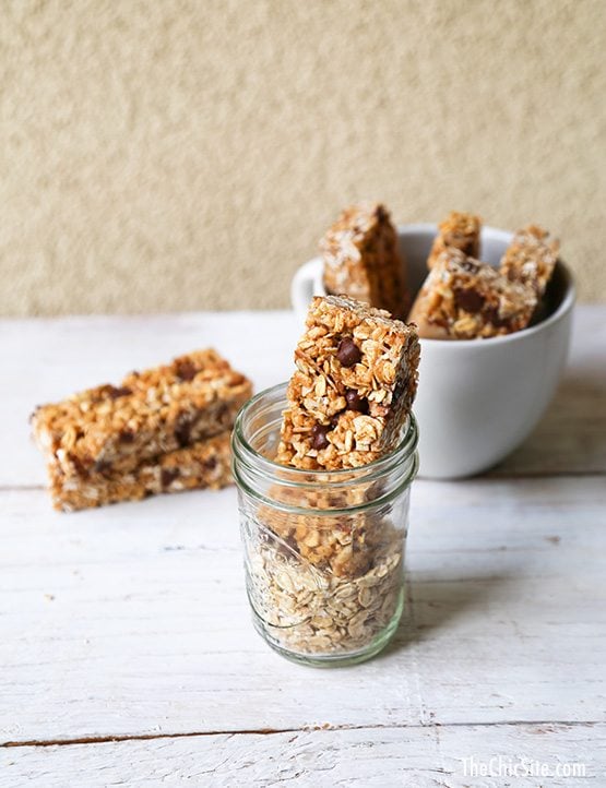 I love chocolate chips in my granola bars. Probably so much that I end up choosing granola bars that should really be labeled as “candy bars.” These coconut almond granola bars are a great alternative to my usual afternoon chocolate bar/cookie/scone pick-me-up.
