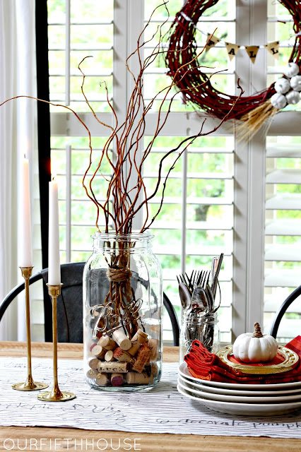 There’s really nothing simpler than bringing in a bunch of branches or leaves from your backyard to create a centerpiece or better yet, make it a family outing by going on a nature walk.