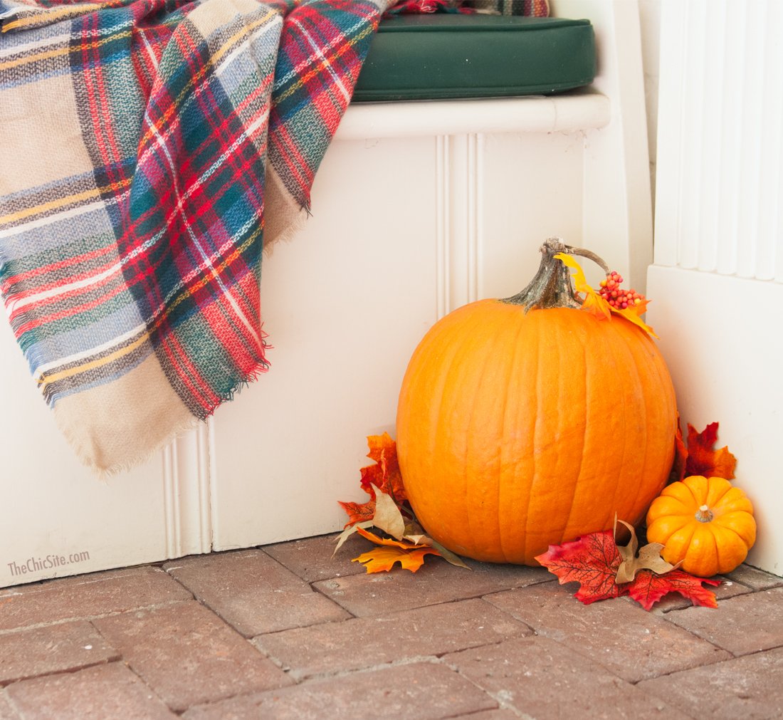 I switched out the little plant that usually sits between my rockers for a small basket filled with little pumpkins. Even if you can’t do anything else but this, it’ll be an adorable little welcome for your guests.