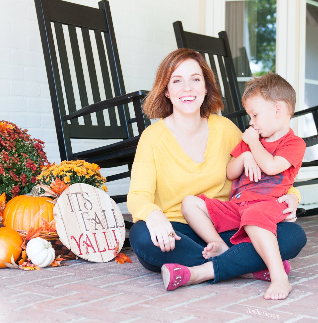 Ford insisted on sitting in for this picture with me… but I think he’s the cutest bit of decor on the whole porch. Happy Fall Y’all!