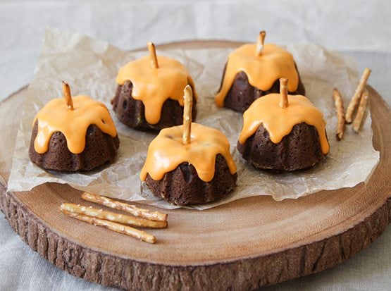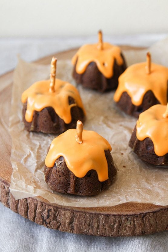 Pumpkin puree is such a nice addition to baked goods. It helps to create the most incredibly moist cakes ever. I added a hint of chocolate and spiked the glaze with a splash of maple extract to make these mini bundt cakes the perfect autumn treat!