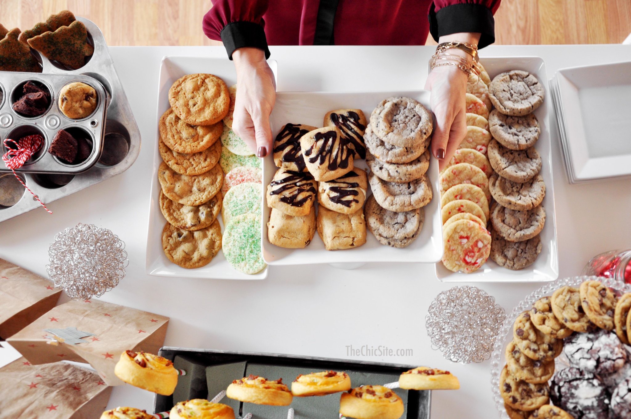 Call me a control freak but I really love all of the dishes on my buffet to match. If you’re like me, consider setting your cookie exchange buffet up empty and then leaving cute little tags instructing your guests where to put their own creations.