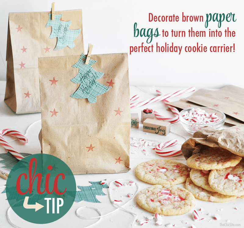 Don’t forget the most important part! How are the cookies getting home with your guests? I like to set up a little DIY bag stations with stamps, stickers, ribbon, etc. Guests can design the perfect to-go bag and it gives them something to do while they mingle. Along with the paper bags be sure and include plastic sandwich bags they can place the cookies in BEFORE they go in the bag. This will ensure the cookie stays moist and the outside of your brown paper stays smudge free.