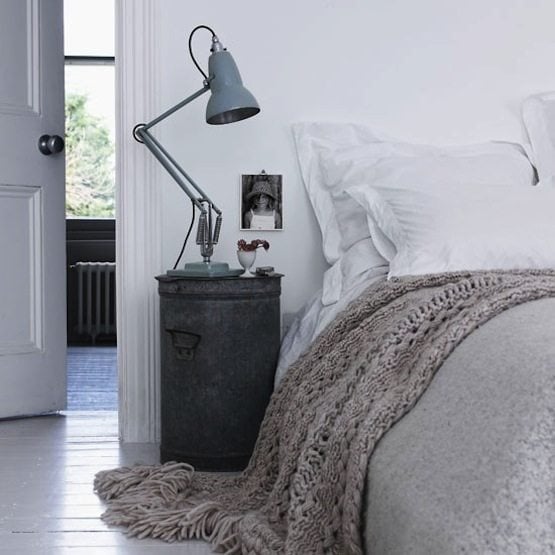 I’m loving this rustic trashcan turned stylish nightstand with built in storage. This trashcan would be perfect for storing extra blankets and pillows, or even thick winter sweaters on the off season.
