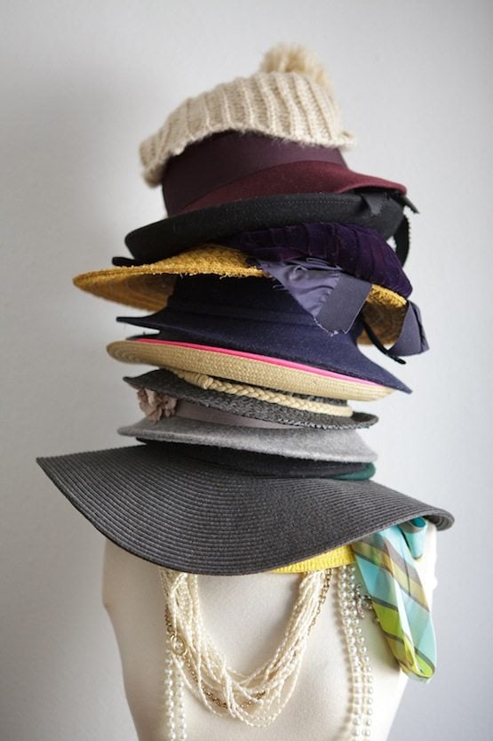 Hats can be difficult to store if you don’t have a variety of hat boxes laying around. Stop them from getting bent and squashed by stacking them on top of each other on a fabric mannequin like Teen Vogue shows us here.
