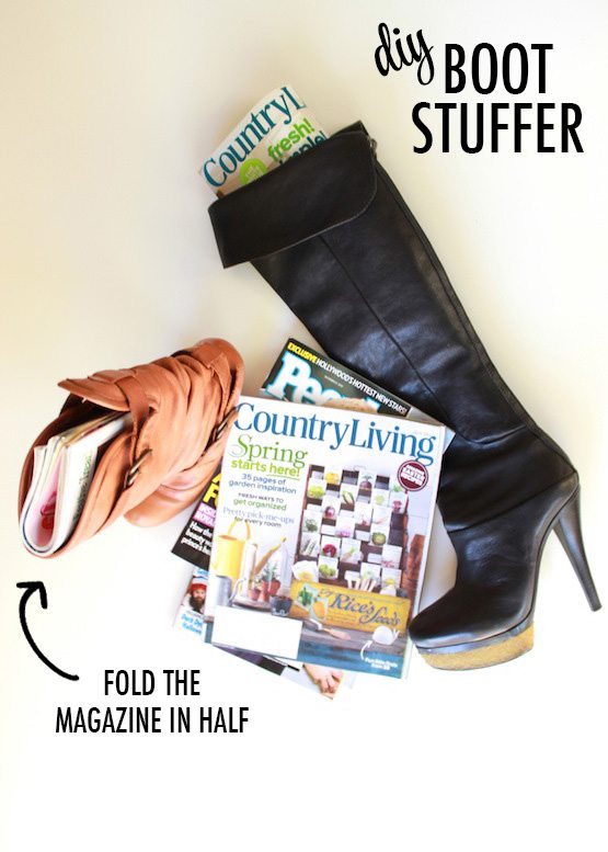 Do you have boots that flop over when you try to stand them up? There’s no need to buy expensive boot stuffers when you can reuse old magazines as a DIY and thrifty alternative! We love new uses for old things.