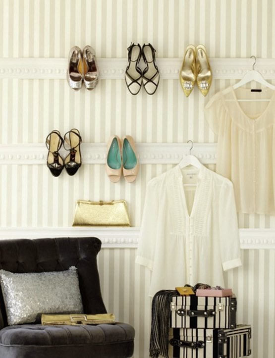 This is such a clever way to hang your heals by Style At Home. By installing this cornicing, you can display your best heals and accessories on the wall like artwork!