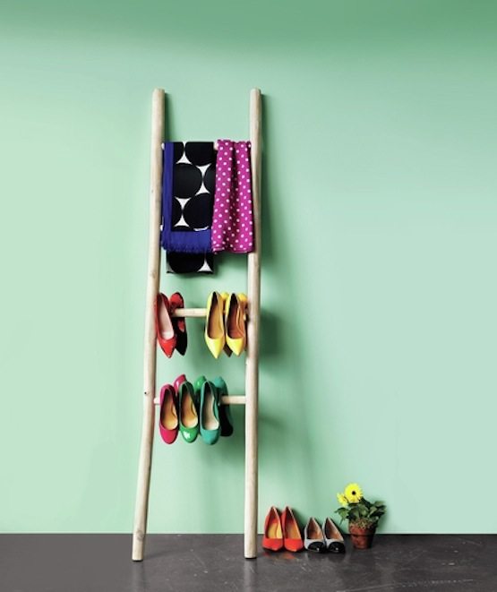 An old ladder can double as a cute shoe rack and/or a scarf hanger. Love this look by Real Simple.