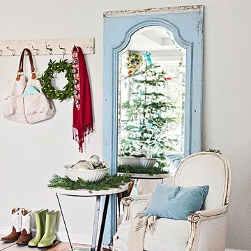 I’m thinking maybe the theme here should be “put a wreath on it” as adding wreaths pretty much anywhere, including the coat hooks in your entry foyer, looks fantastically festive!