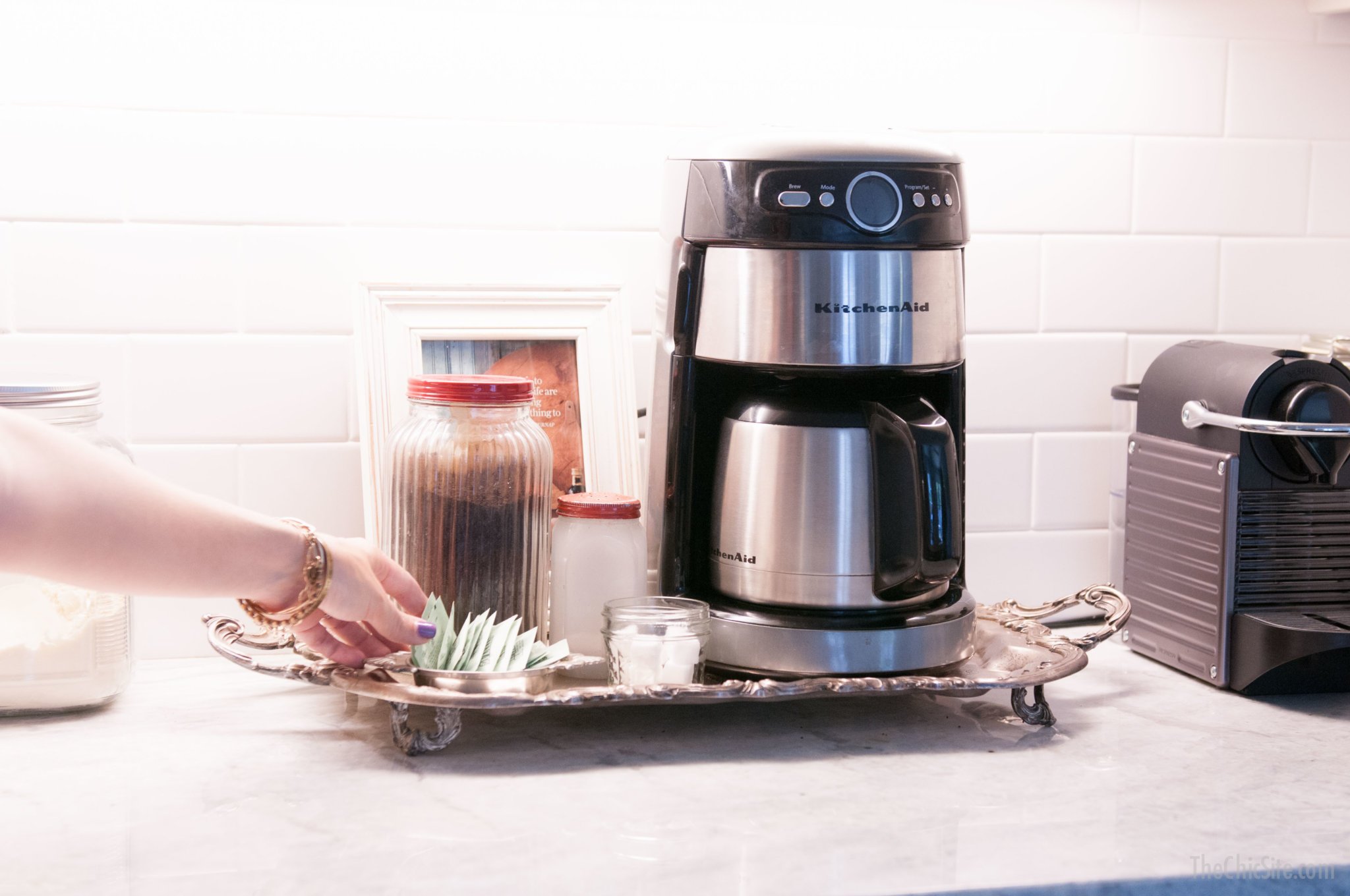 If my stove is my boyfriend, then coffee is my best friend. When you care about something as much as I care about coffee you want it to look good! The silver tray was $10 at a Goodwill, the cinnamon shaker came from a second hand store in Tennessee and the tiny silver container holding the sweetener packets was from a flea market in Paris. That makes me sound super fancy but it’s worth noting that the $2 container was all my poor self could afford at the time. The cool thing about buying treasures on trips is that you remember them whenever you see the trinket.